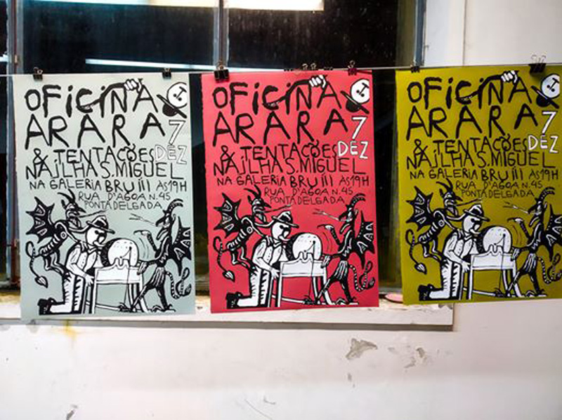 Like a dream-machine, Oficina Arara feeds itself from the desires and deliriums of its founding members: Miguel Carneiro, Dayana Lucas, Marta & Alves Von Calhau and Luís Silva, as well as from the community of partners coming from all kinds of backgrounds. Set on exploring both critically and creatively the many processes and methodologies inherently related to the creation of posters, books and other graphic objects. Our goal is to establish a continuous, uninterrupted flow throughout all the phases of the process, reconnecting technical means and rekindling creativity in a one, singular flux.